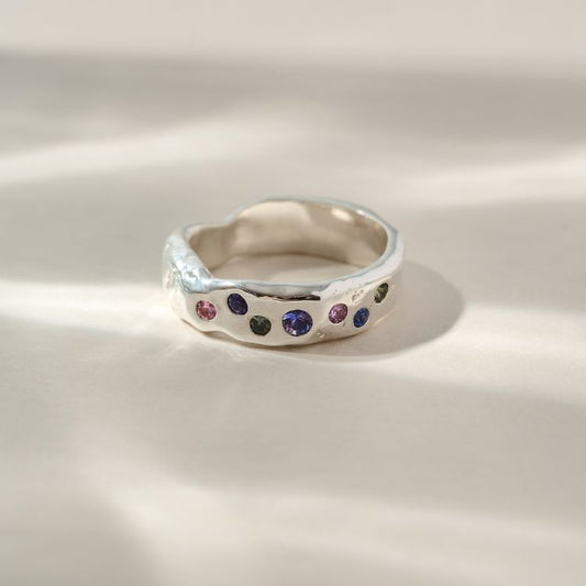 Harlequin Molten Slim 9ct Gold Sapphire Ring - Multiple Stones