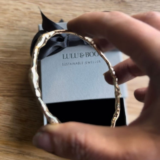 Silver vintage bangle with Lulu and Boo medium molten silver halo