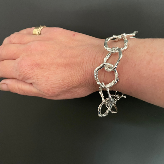 Silver vintage bangle with Lulu and Boo medium molten silver halo