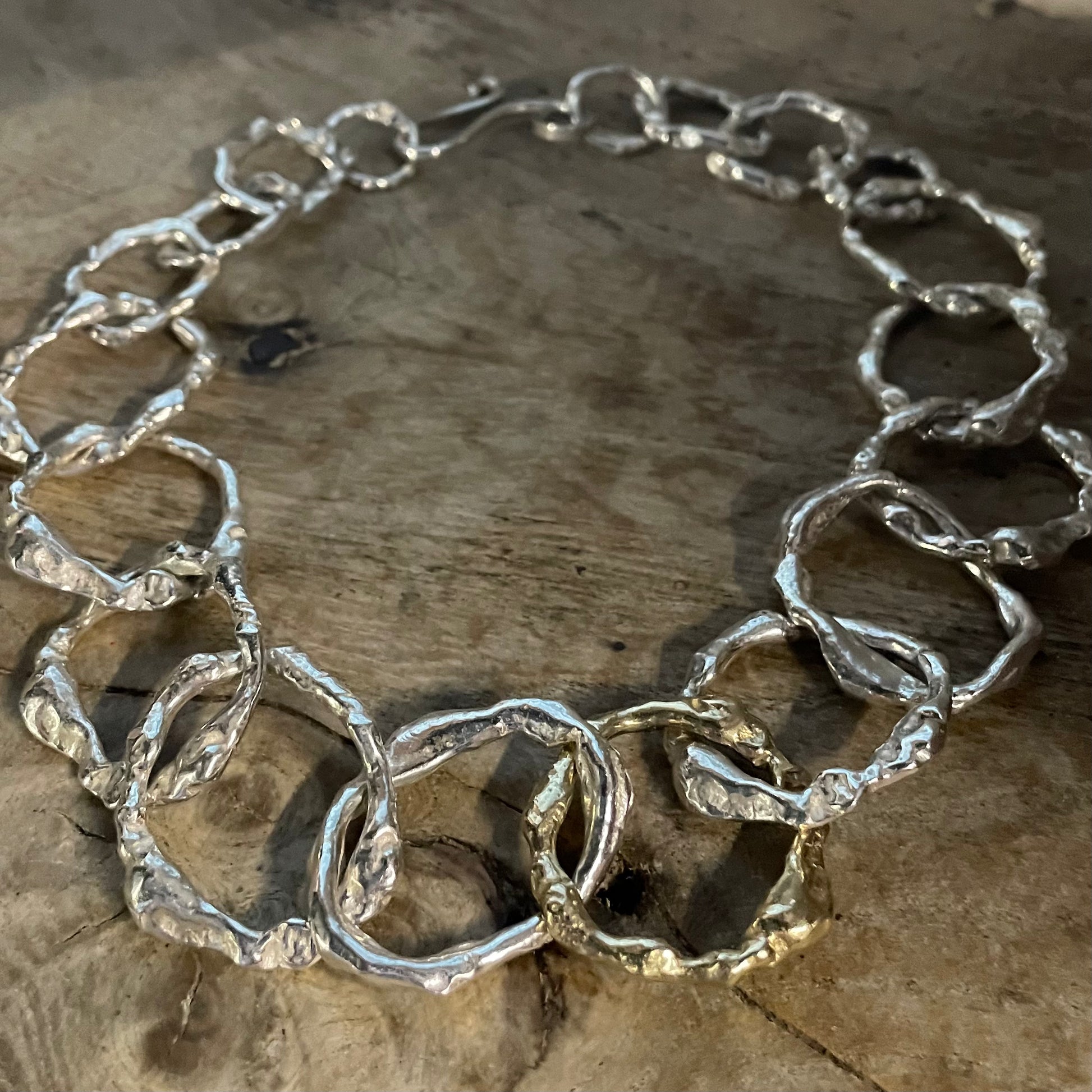 The Full Halo Choker in Silver and 9ct Gold is handmade to order and available within one week. Please message Corrine if your timescales are tighter and we will do our best to help.