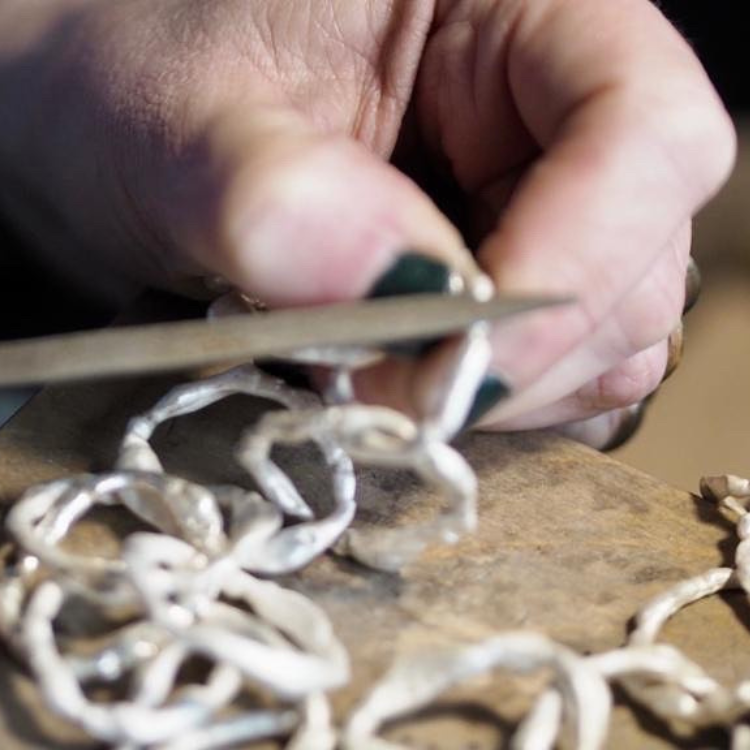 Sustainability is central to the business ethos. From the use of recycled precious metals and sourcing of ethically mined gemstones down to the refining of filed silver dust, all of my designs and processes are considered with the environment in mind.