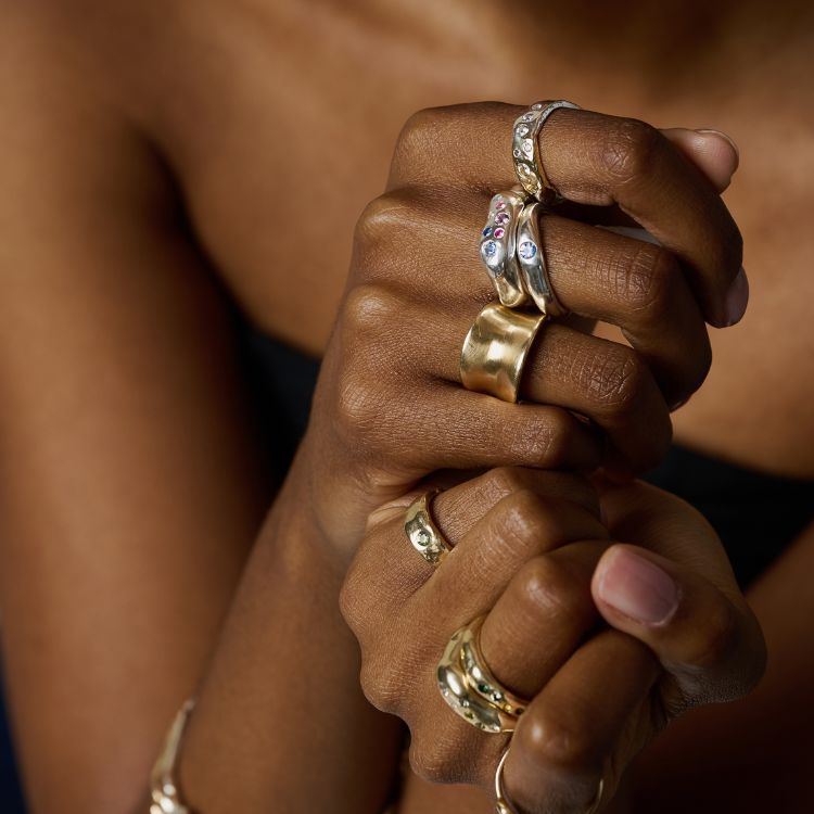 Sustainability is central to the business ethos. From the use of recycled precious metals and sourcing of ethically mined gemstones down to the refining of filed silver dust, all of my designs and processes are considered with the environment in mind.