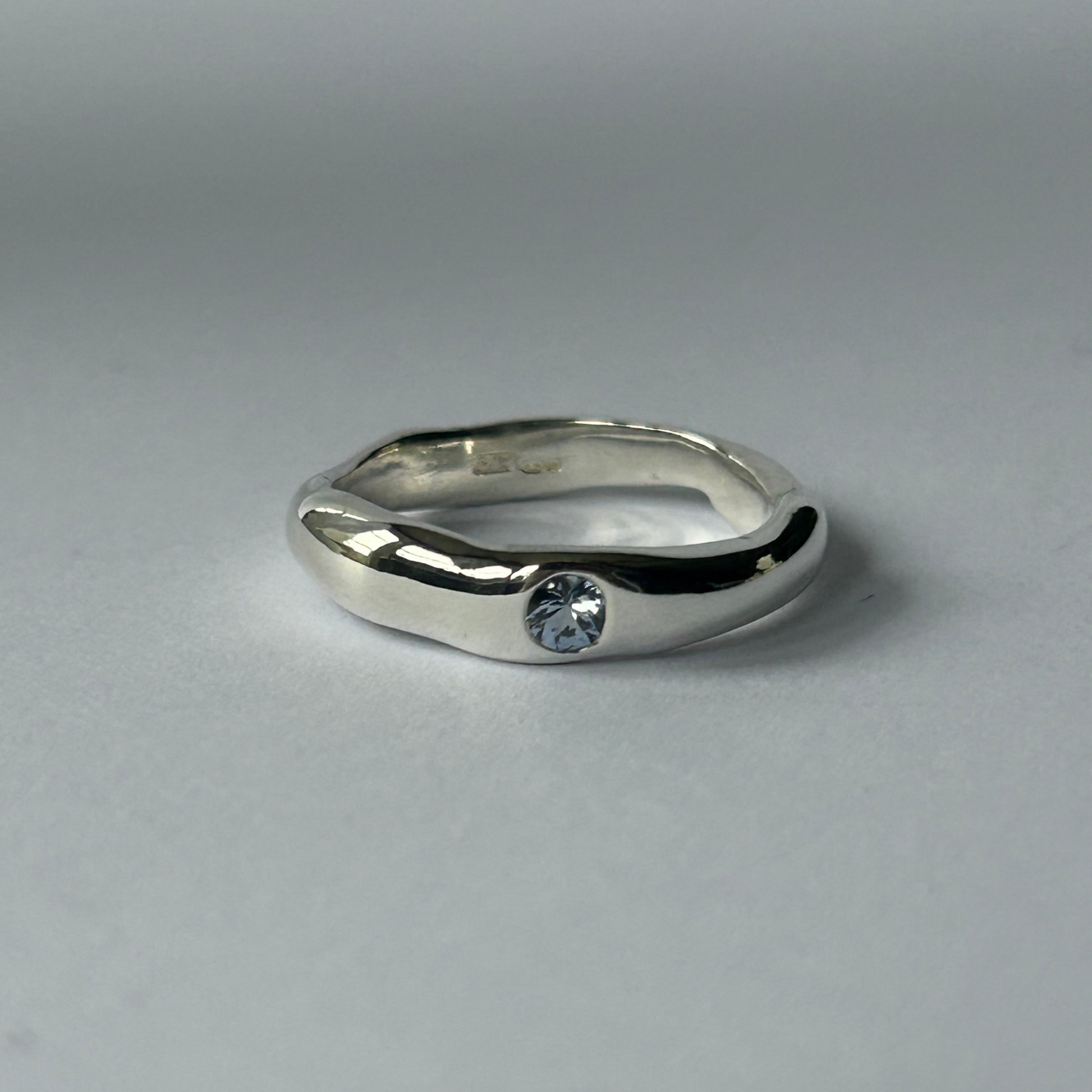 A single set sapphire melts into the molten surface of the sterling silver ring, creating a contemporary twist on the sapphire band ring that remains timeless style. We've started with our popular small sterling silver molten ring and added a sapphire in your choice of colour to take the sparkle-factor to the next level.
