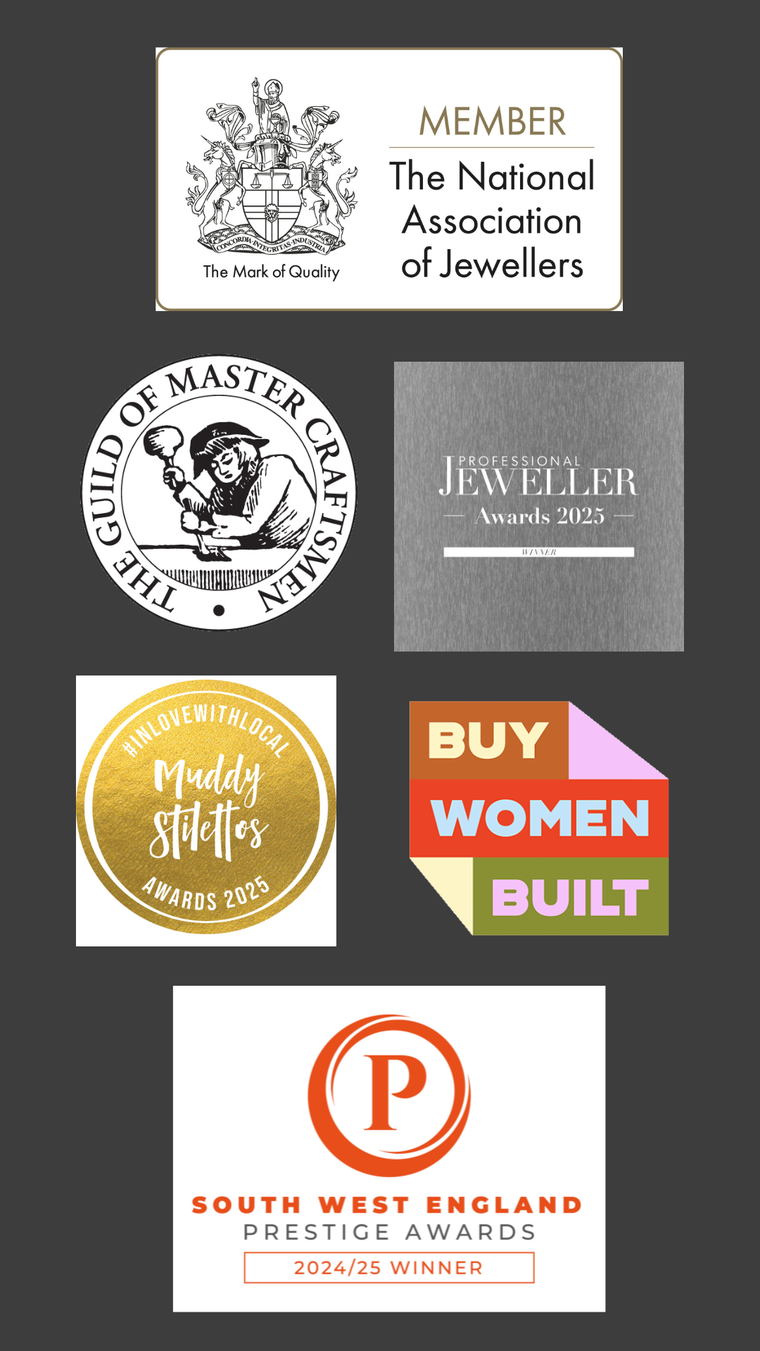 Sustainability is central to the business ethos. From the use of recycled precious metals and sourcing of ethically mined gemstones down to the refining of filed silver dust, all of my designs and processes are considered with the environment in mind.
