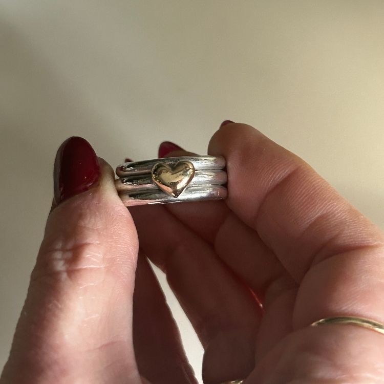One off prototype of 9ct gold heart and three tier silver ring SIZE N 1/2