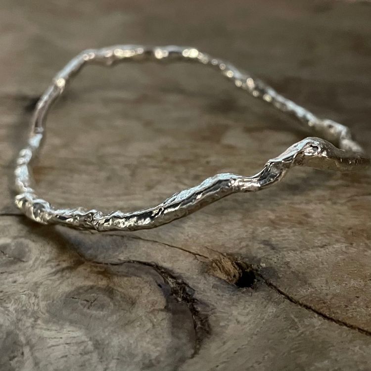 Handmade by melting recycled silver and following its natural molten forms. Wear alone or mix up with a selection of bangles. Perfect for stacking.